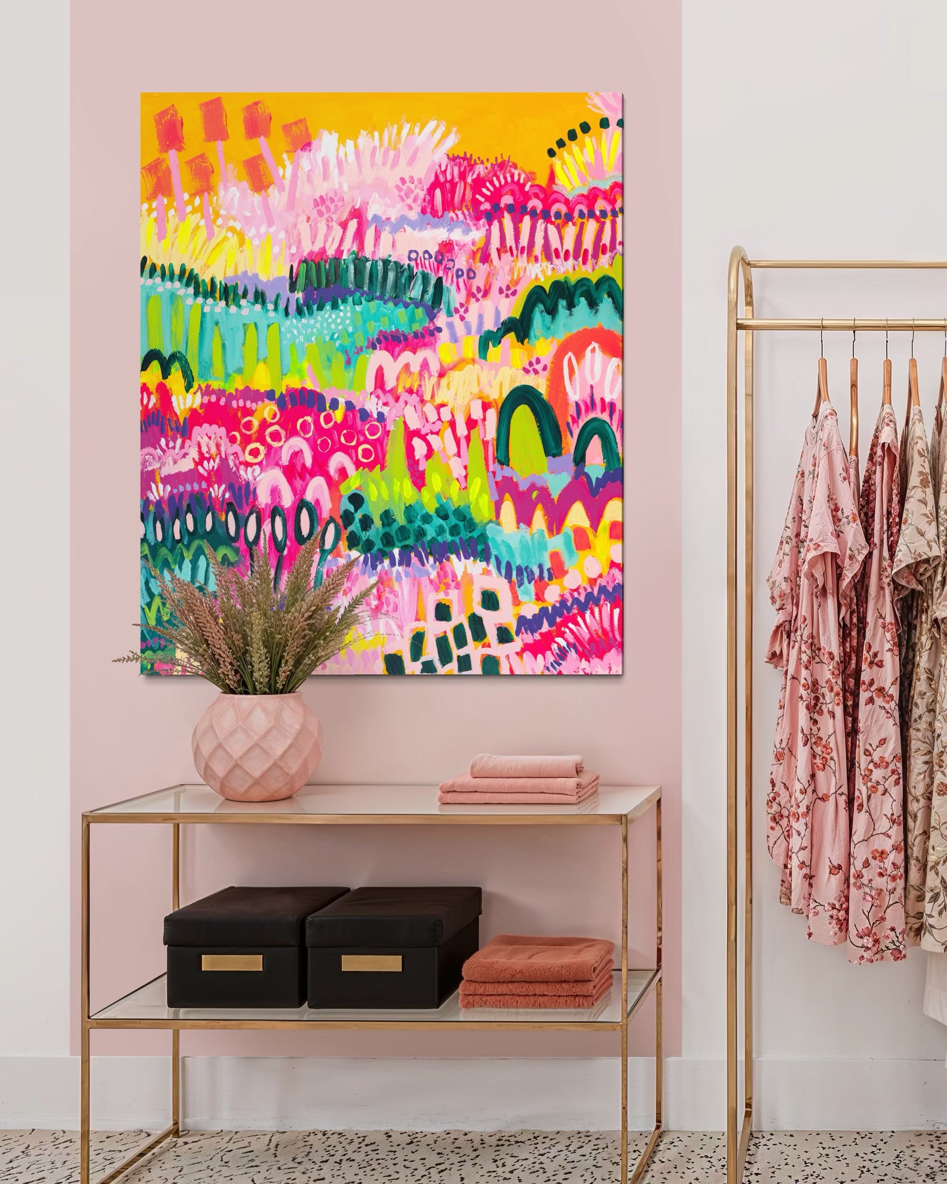 This canvas print of the original Hayley Pearson acrylic on canvas is perfect for anyone who treasures the Botanical Gardens in the Adelaide Hills in Autumn or craves a bright pop of colour that radiates happiness.